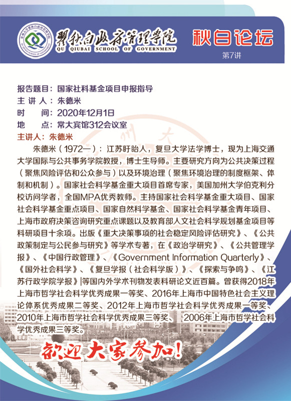 秋白论坛第7讲:国家社科基金项目申报指导